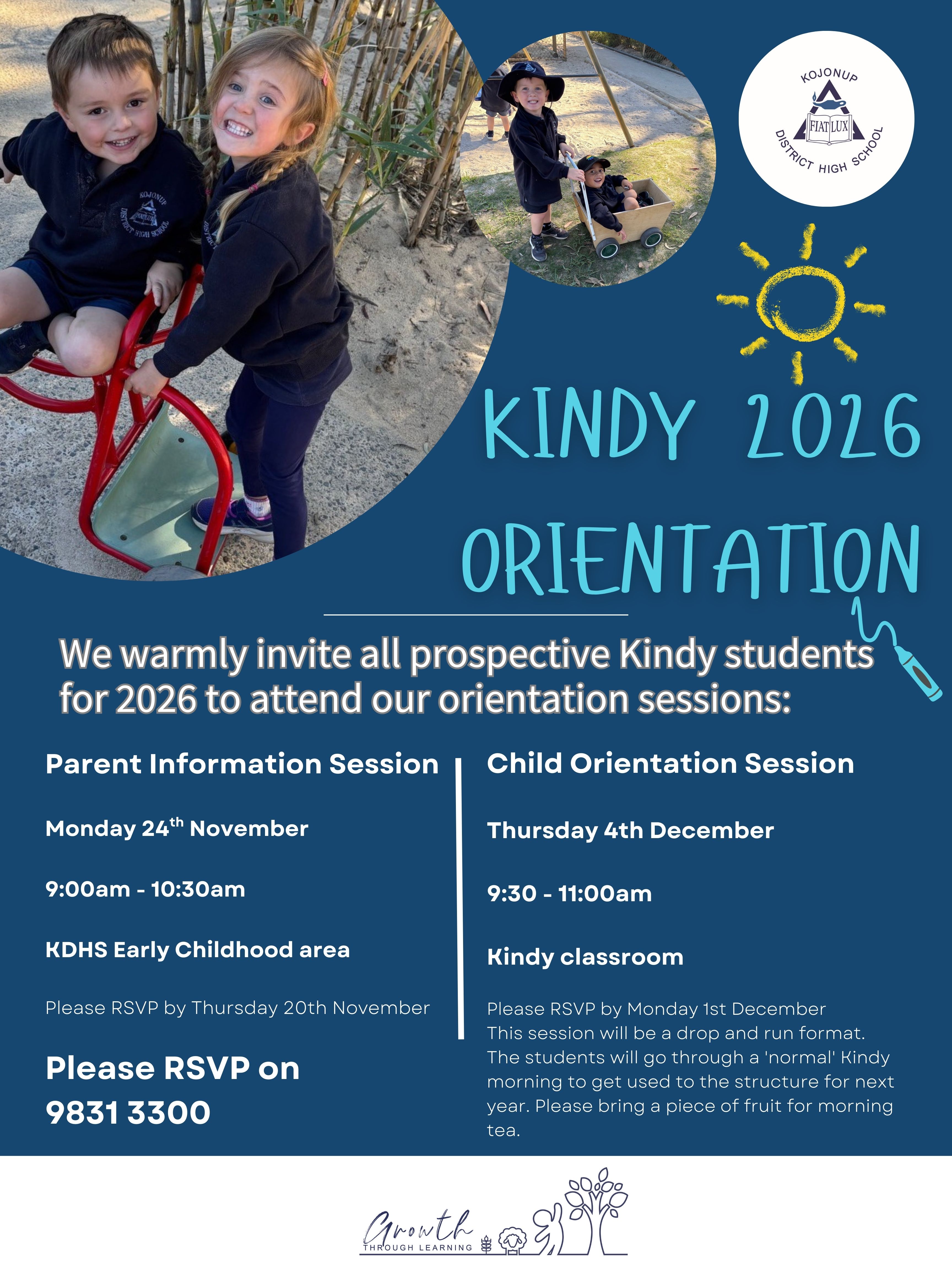 Our Kindy Orientation sessions will be on Monday 24th November and Thursday 4th December